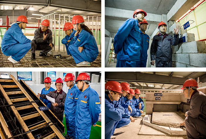 建筑工程实训中心建筑面积1600平米,设有图纸会审区、筏板基础区、钢筋操作实训区、砌筑抹灰实训区、混凝土实训区、钢结构二层区、建筑模型区、装饰装修样板间10个实训区域,承担工程造价、物业管理、工程管理、工程技术等专业实训任务,可开设建筑图纸会审、施工测量综合训练、混凝土结构施工综合训练、施工组织综合训练等实训项目。