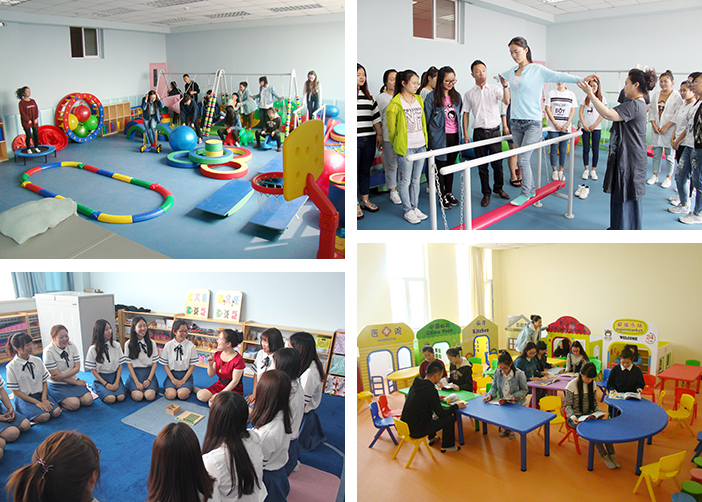 学前教育、初等教育实训中心建筑面积近1000平方米,主要包括:蒙台梭利实训室、奥尔夫音乐教育实训室、幼儿游戏与区角活动室、早期教育实训室、幼儿感统训练室、幼儿园仿真模拟实训室、亲子实训室,承担学院蒙氏、亲子、感统、奥尔夫等相关实训项目。