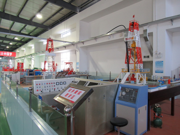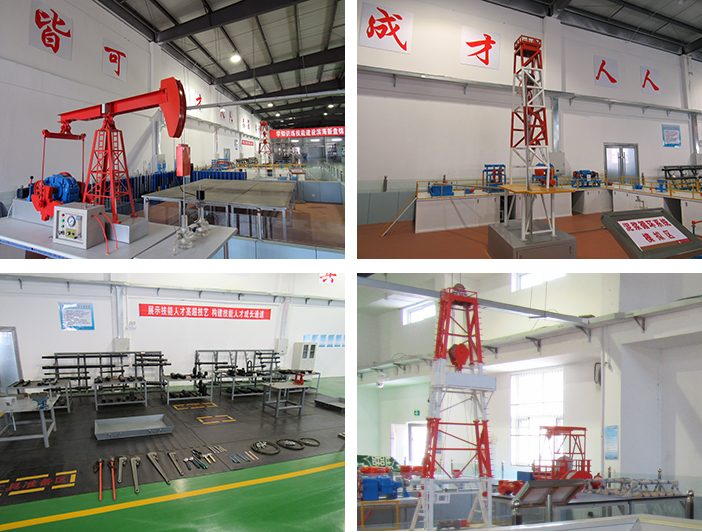油气钻采工程实训分中心建筑面积1000平米,设有井下工具模型展示区、井控模拟区、泥浆循环系统模拟区、JJ450/45-k井架拆装区、钻采工具模型展示区、钻井作业模拟区、游梁式抽油机教学模拟区,承担校内石油工程相关专业的校内实践性教学工作;校内外职业技能培训鉴定工作及组织实训项目开发,共开设“井控过程处理”、“井架拆装”、“绞车拆装与保养”、“司钻台操作”“抽油泵泵效试验”和“抽油机上下冲程悬点载荷实验”等40多个实验实训项目。