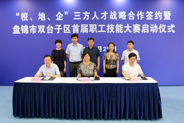 7月25日,学院与双台子人民政府和盘锦市化学工业暨新材料产业协会的“校、地、企”三方人才战略合作签约仪式暨盘锦市双台子区首届职工技能大赛在学院举行。