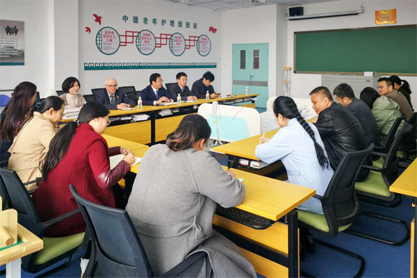 4月4日,学院召开了双元培育项目中期研讨会,德国国际合作机构(GIZ)唐瀚博(Hans-Eberhard Trowe)博士、张耀文总监莅临学院参会,学院张洪福副院长、国际交流工作处徐晓强处长进行热情接待,并会同科技与规划处、教务处、人事处以及三个试点专业的主要领导共同对双元培育项目的进展情况及未来发展进行了会谈。会议紧紧围绕人才培养方案开发、学生赴德资企业实习就业、AHK认证考试、项目成果提炼总结等几个核心问题展开,唐博士从GIZ的角度阐述了共同努力方向与解决问题的主要方式,同学院双元培育项目组成员达成一致。