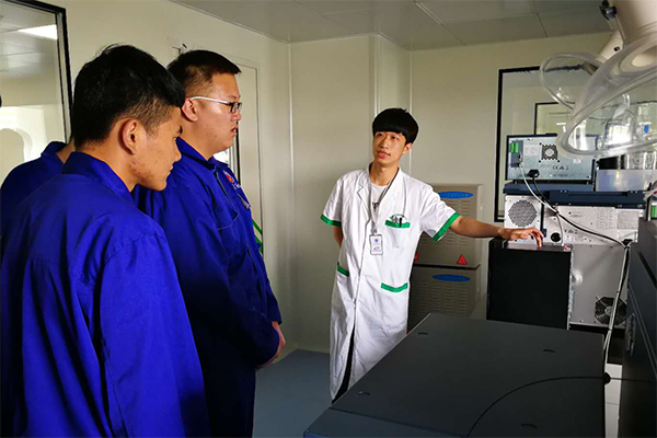 师生分成3组,在我系就职于检验检测中心的毕业生张涵、李景旭、康家硕、于金晖的带领及讲解下,参观了中心的收样大厅、药品检测实验室、微生物检测实验室、理化检测实验室、图书室以及活动室,让师生了解了整个中心实验室建设、工作流程、规章制度和中心文化。通过参观赛默飞世尔科技合作实验室和与依拉勃战略合作实验室,观看了检验人员的现场实验,检验人员生动形象地为师生讲解了气相色谱仪、液相色谱仪、原子吸收分光光度计、电感耦合等离子体质谱仪等各类大型仪器用途和使用方法,认识了中心先进检测设备和技术,了解了检验岗位工作过程。