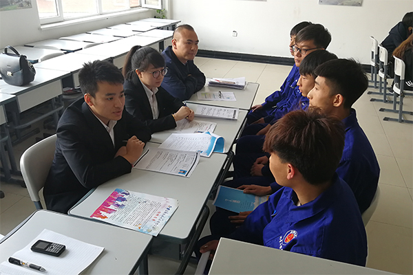 宣讲会期间,各公司人事部主管人员以ppt的形式就公司的规章制度、福利待遇、企业文化、现有产业结构、组织构架、人力资源政策等方面内容向同学们做了简单介绍,并现场解答了同学们的疑问。让同学们充分了解企业同时选择适合的实习单位。宣讲会结束后,有序组织学生进行面试。学生们都手持自己精心准备好的自荐书和简历,积极与招聘人员交流,根据企业的岗位设置有针对性的选择面试。部分企业在面试后进行了二次面试,舒峻峰老师陪同进入学生前往企业进行面试。