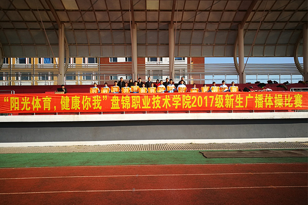 为全面实施大学生素质教育,推进我院大学生阳光体育工程建设,提高大学生身体素质,增强大学生身心健康意识,丰富校园课余文化活动,10月24日下午,学生工作处在学院体育场组织开展了主题为“阳光体育,健康你我”盘锦职业技术学院2017级新生广播体操比赛活动。学院党委副书记李兵、学生工作处处长邓红伟及各分院系的学工领导、辅导员老师亲临现场观看比赛。此次比赛邀请学院体育工作部六名老师担任了评委。