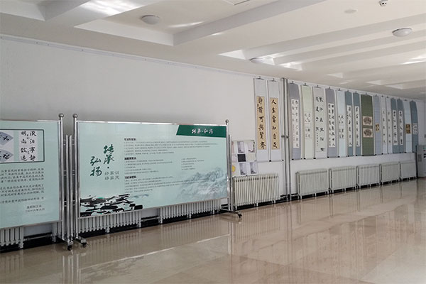 本次书画展得到了广大教职工的大力支持和积极响应,共征集到了50余幅书画作品,在集中选优的基础上展出40幅。参展的参展作品虽风格迥异,篆、隶、行、楷、草种类齐全,内容丰富,寓意深刻,都铺陈着“修德健智强身,爱国勤业持家”的教义。