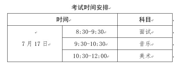 面试、音乐、美术三项成绩均合格者,市招考办按考生中考成绩语文、数学、英语、体育四科总分由高到低顺序依招生计划录取。