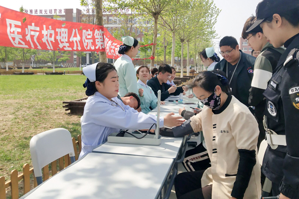 随后,义诊活动相继进行,医疗护理分院分别在博远楼前、教工食堂以及学生二食堂三个地点举行了相关义诊活动。活动中,分院师生充分发扬了“关爱、博爱、奉献”的精神,呼吁广大师生群众关爱身体,呵护健康,志愿者们更是尽职尽责,为师生进行血压、血糖、心电图等常规检查,现场演示心肺复苏。同时在博爱楼开展了中医理疗工作坊,带给大家不一样的中医按摩体验,让广大师生体验到了“家门口”的优质医疗服务。