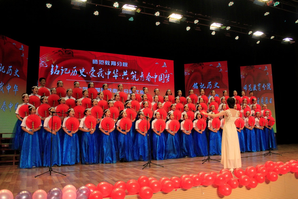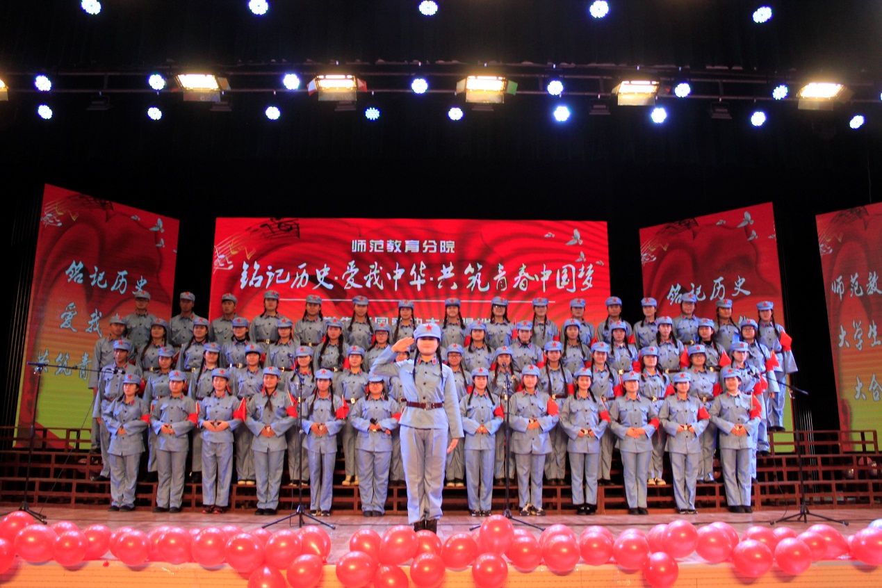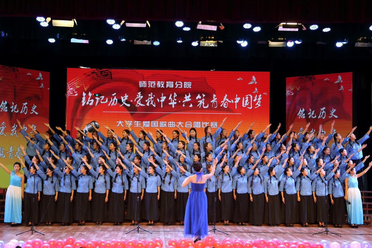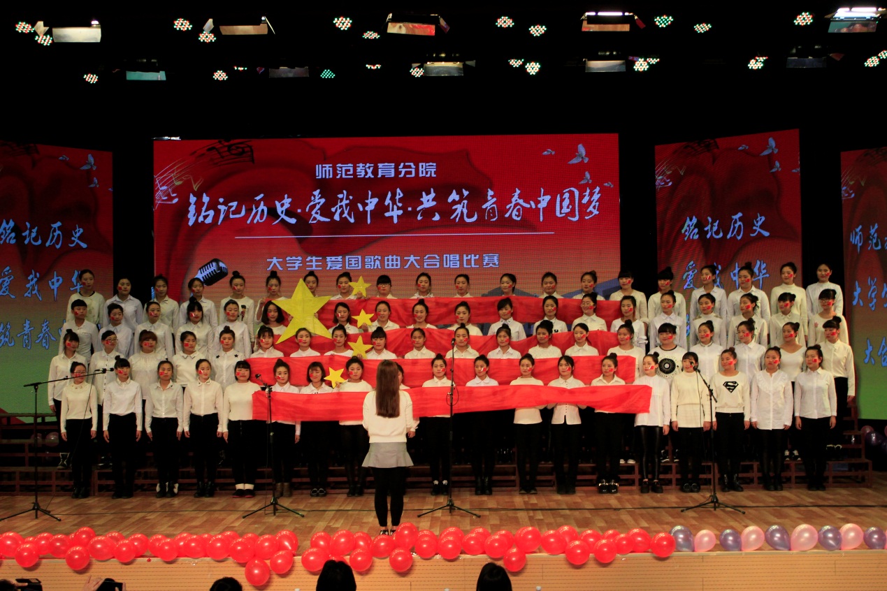2015年9月3日,是中国首个法定的“中国人民抗日战争胜利纪念日”。为深入缅怀抗战英烈的光辉业绩,弘扬“铭记历史、缅怀先烈、珍爱和平、开创未来”的胜利主题,激发广大青年学生奋发成才,报效祖国的热情,师范教育分院举办“铭记历史•爱我中华•共筑青春中国梦”大学生爱国歌曲大合唱比赛。