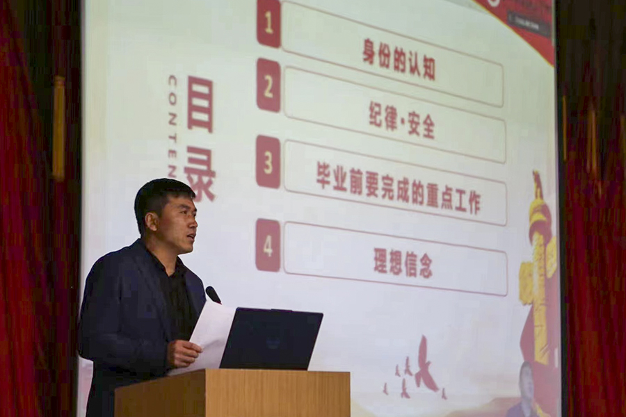 接下来,建筑工程学院副院长于德国向同学们讲解了国家《职业学校学生实习管理规定》和实习期间的相关要求,并通过分享自身实习就业经历和典型的实习案例,引导同学们珍惜岗位实习机会,端正学习态度,严于律己,学有所成。