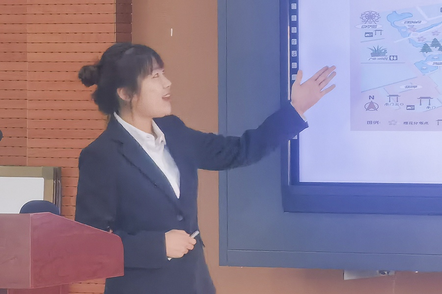 实训最后两天,主要进行了景区运营、景区导游讲解以及虚拟景区运营等实训活动。同学们以小组为团队,分工协作,完成虚拟景区构建,并按照景区部门职能,完成了虚拟景区的PPT展示及讲解介绍,以及对景区纪念品的产品推介。