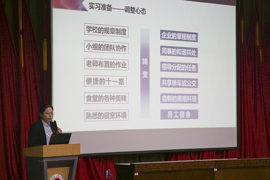 接着,物流教研室主任高飞老师对实习时间、实习形式、实习岗位要求、考核方式分别做了详细阐述,并分享2019级学生实习经历,勉励大家传承学院优良传统,让青春在实习岗位上闪光。