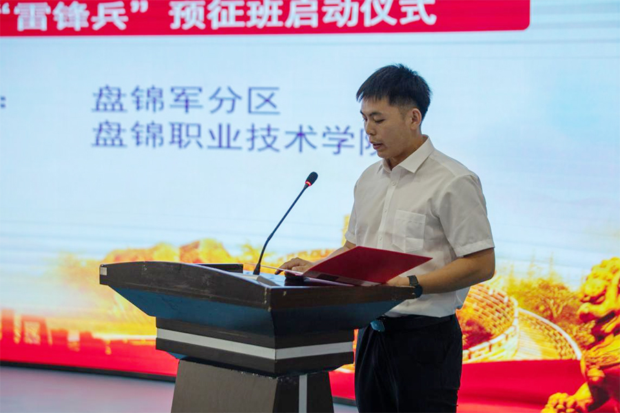 6月13日下午,我校“雷锋兵”预征班启动仪式在博远楼108报告厅举行。盘锦军分区司令员黄勇、盘锦军分区动员处处长刘广东、校党委副书记、武装工作部部长李兵,相关部门负责人及各学院分管学生工作的书记、副书记,全体辅导员,“雷锋兵”预征班全体学员参加本次活动。