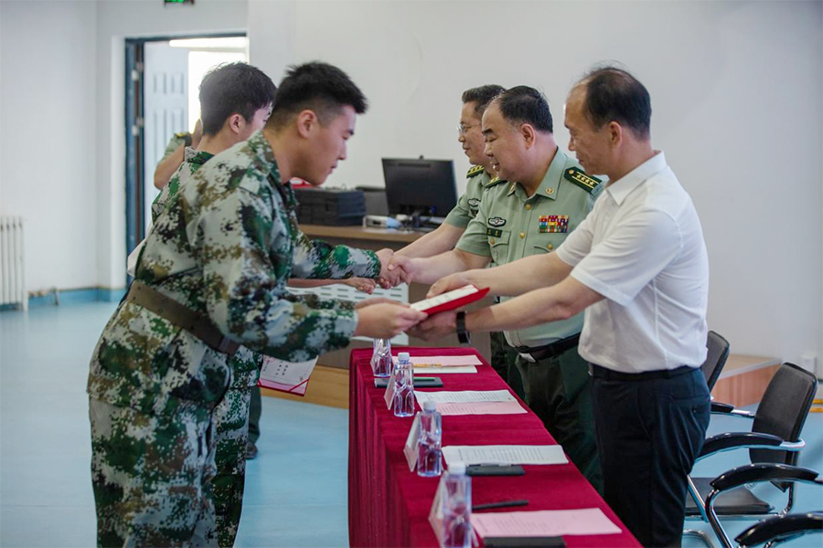 李兵书记代表学校向长期以来对学校征兵工作、国防教育工作大力支持的盘锦军分区表示衷心感谢。他指出,多年来,学校始终站在强军育人的战略高度,赓续红色血脉,传承红色基因,坚持把大学生征兵工作、国防教育作为学校重点工作来抓。他强调“雷锋兵”预征班的建设要按照“人员选拔精干化、场地建设配套化、训管人员专业化、管理模式规范化、教育训练军事化、考核评价制度化”的要求开展。