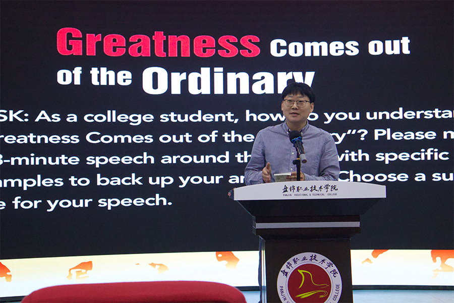 为了提升我校学生在英语演讲方面的技能水平,增强学生运用英语讲述中国故事、传播中国文化的能力,激发学生学习英语的热情,基础部举办以“Greatness Comes out of the Ordinary”为主题的首届英语演讲大赛。2024年11月8日,英语演讲大赛决赛在博远楼108室隆重举行。