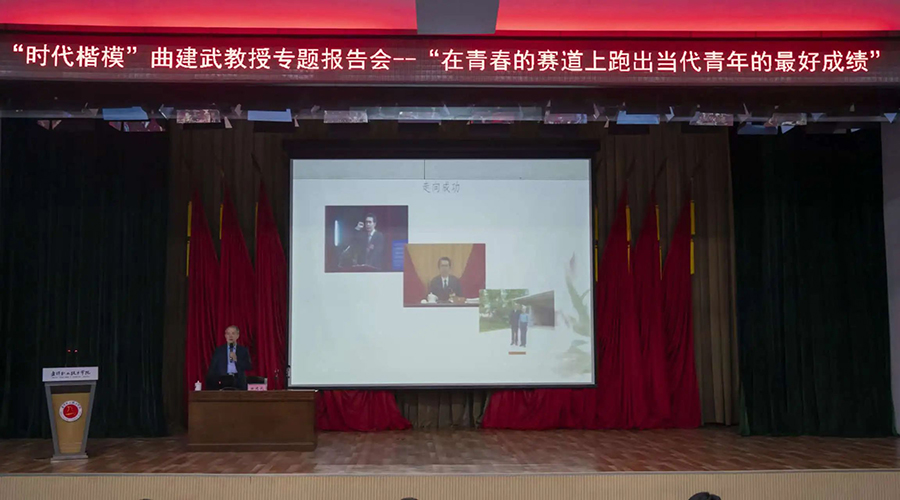 报告会上,曲建武教授以《在青春的赛道上跑出当代青年的最好成绩》为题,深入阐述培育时代新人的重要性和紧迫性。曲建武教授开篇引用电影《守望青春》(该电影以曲建武教授为原型)里的经典台词:“我年轻过,你们没有老过”来解答“为什么上大学”和“怎样读好大学”这两个时代命题,激励我校学子牢记党的谆谆教诲,坚定心有大我、至诚报国的理想信念,为实现中国梦贡献青春力量。