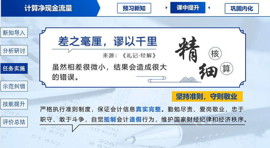 在职业教育高质量发展的新征程中,财务管理课程团队以教育家精神为引领,立足传统文化根基,融合数字技术创新,将责任意识培育、匠心精神塑造贯穿教学全过程,构建起独具特色的课程思政育人体系,交出了一份德技并修的满意答卷。