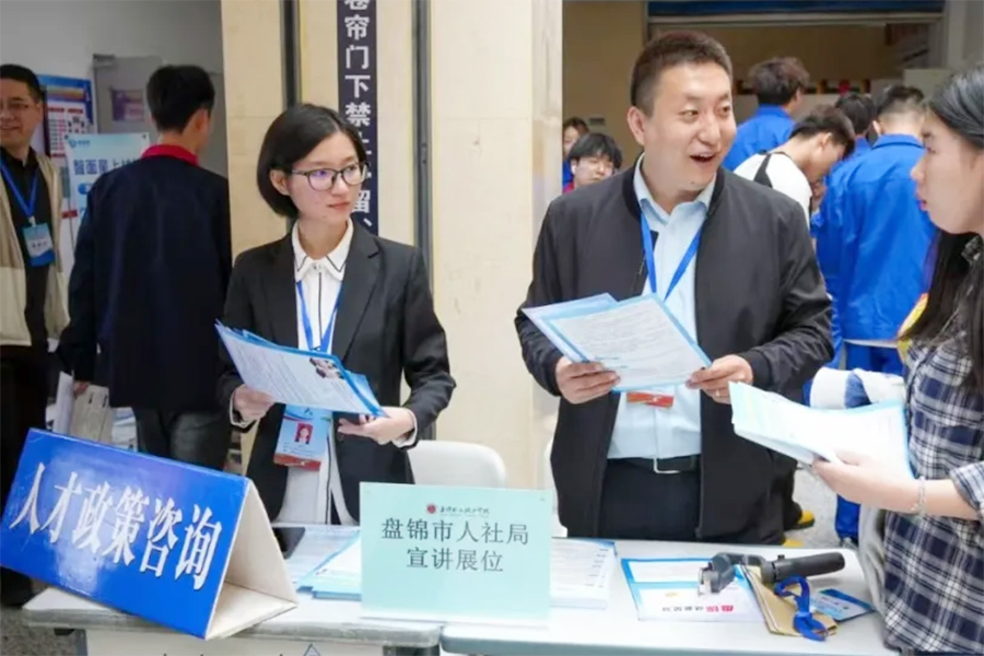 5月20日,由盘锦市人力资源和社会保障局、盘锦职业技术学院联合举办的“盘聚人才 锦绣未来”盘锦市人社局走进盘锦职业技术学院专场招聘会在学校图书馆、博学楼举办。