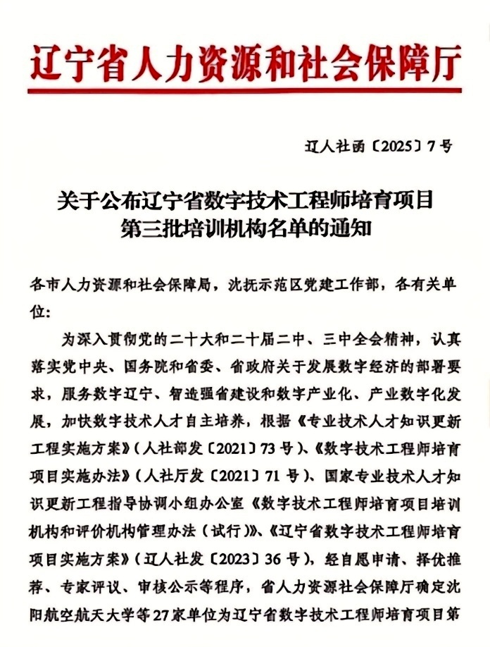 喜报 | 我院获评辽宁省数字技术工程师培育项目第三批培训机构