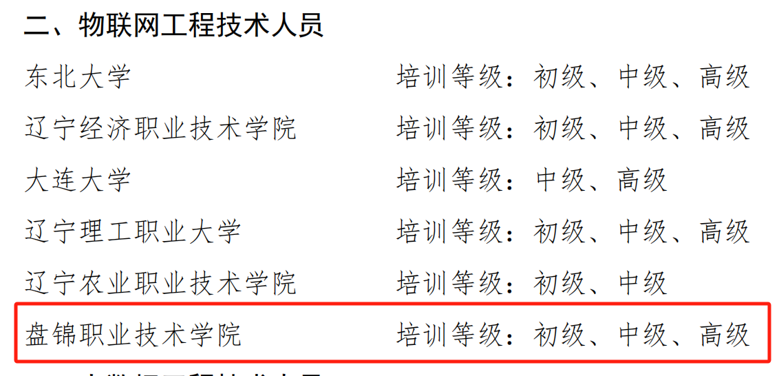 2025年1月8日,省人力资源和社会保障厅公布辽宁省数字技术工程师培育项目第三批培训机构名单,我院获得“物联网工程技术人员”“工业互联网工程技术人员”“人工智能工程技术人员”“大数据工程技术人员”“云计算工程技术人员”“数字化管理师”六个职业方向的数字技术工程师培训资质。