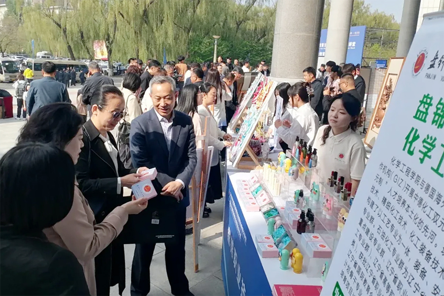 在此次展示中,化学工程学院展出包括杀菌洗手凝胶、护手霜、洗手液、润唇膏、手工皂、口红等十余款“静香坊”系列日用化学品。这些产品不仅融入了课程教学成果,还体现出学生良好的技术素养和创新能力,赢得了现场观众及专家的高度评价。