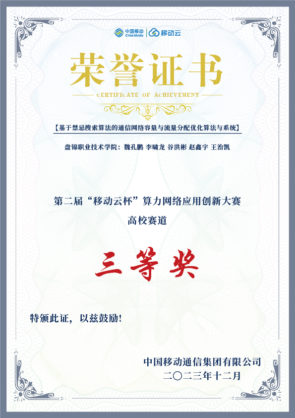 2023年11月29日至12月1日,移动云开发者技术论坛暨第二届“移动云杯”算力网络应用创新大赛总决赛在苏州完美落幕。我校信息学院学子赵鑫宇、王治凯两位同学在魏孔鹏、谷洪彬、李啸龙指导老师的带领下,经过初审、初赛、复赛和决赛的激烈角逐,荣获高校赛道三等奖。