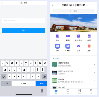 在首页输入图书馆邀请码,盘锦职业技术学院图书馆邀请码pjzyjsxy,就可以进入到盘锦职业技术学院图书馆专属定制页面“数字资源移动阅读”。