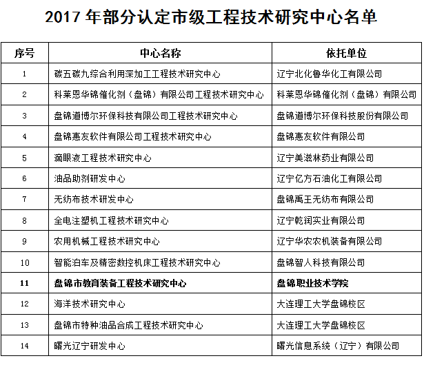 为进一步实施创新驱动发展战略,完善技术创新体系,推动企业成为创新主体,加快科技成果转化以及人才培养与引进能力,根据盘锦市工程技术研究中心认定标准相关要求,在科技与规划处...